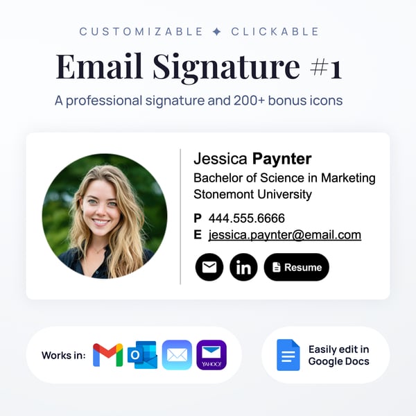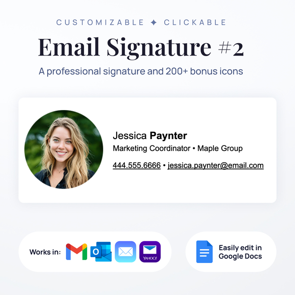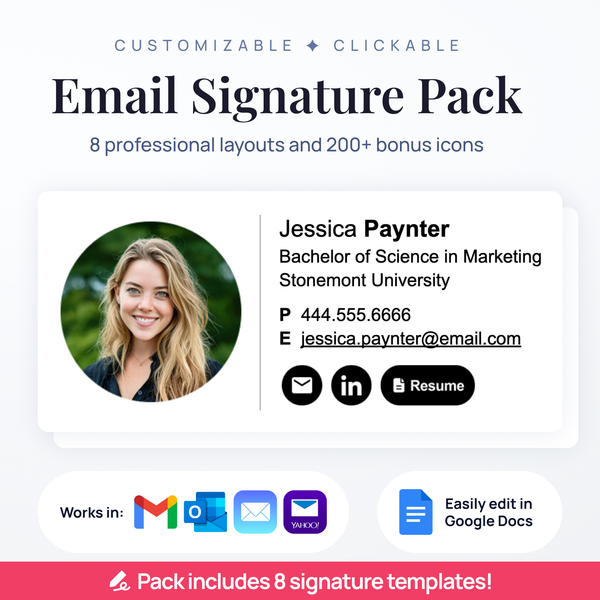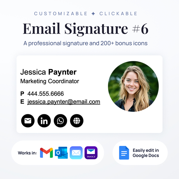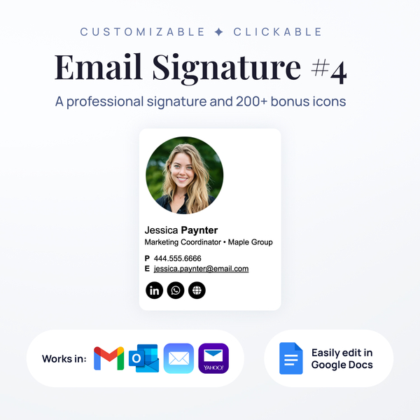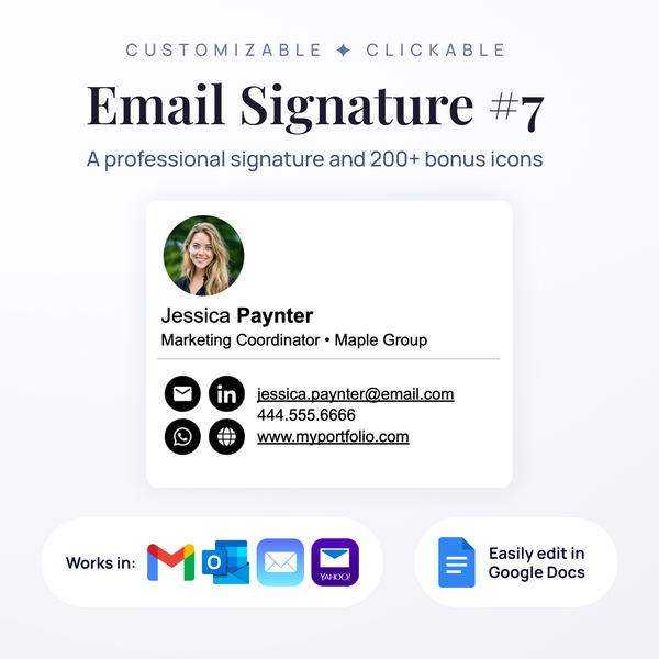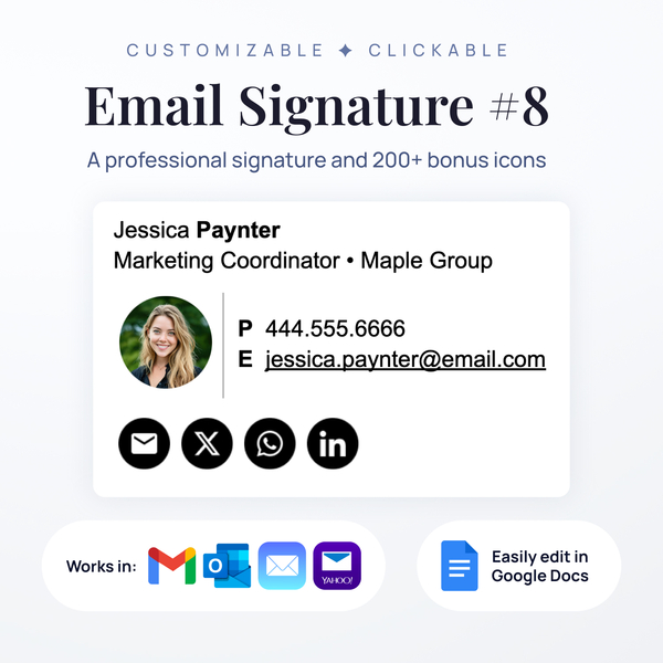 Professional Email Signature Pack – 8 Clickable Google Docs Templates plus 200+ Social & Contact Icons