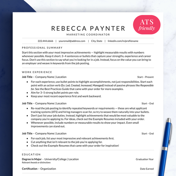 Professional Resume Template for Google Docs, Apple Pages, Word — Includes Matching Cover Letter & References — ATS Friendly in 2025